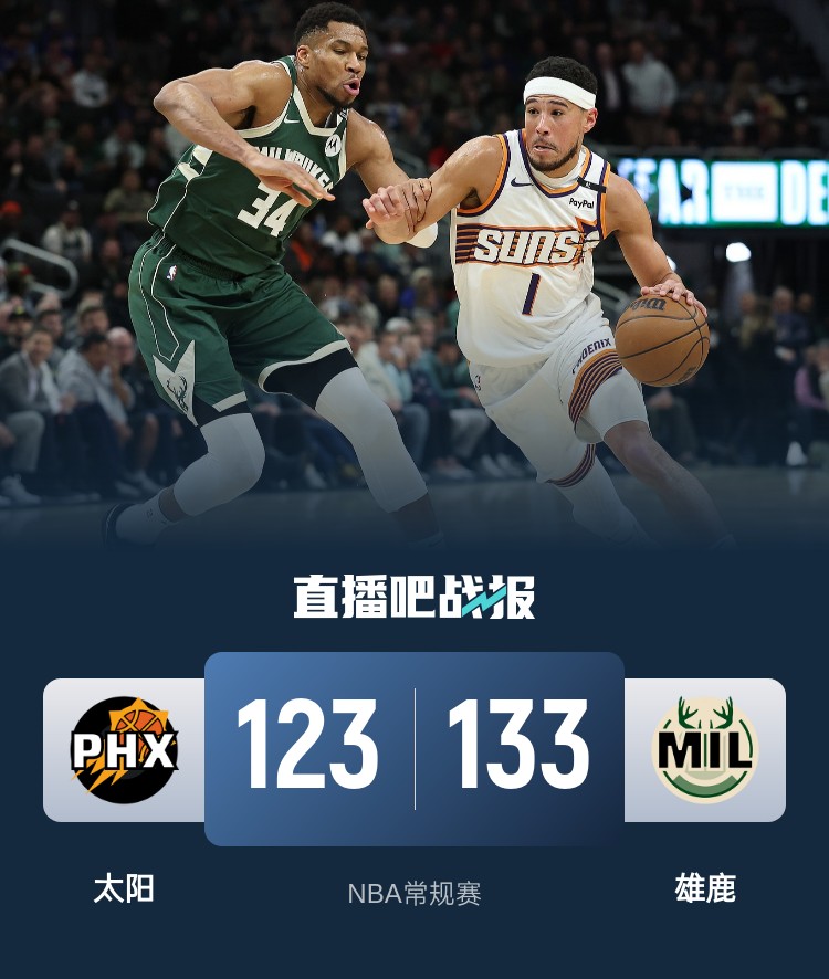 4月2日讯 NBA常规赛,雄鹿今日迎战太阳,两队目前的情况都不太好,前者已经遭遇四连败,后者也是三连败,此役杜兰特、比尔、奥尼尔、利拉德和波蒂斯等人缺战。