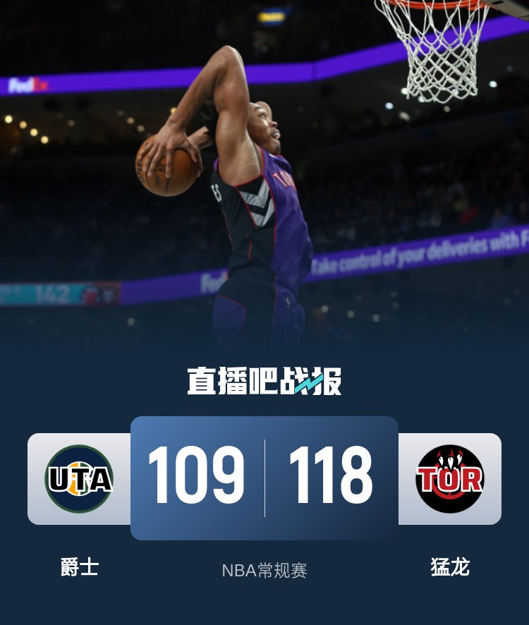 3月8日讯 NBA常规赛今日继续开打,猛龙坐镇主场迎战爵士。