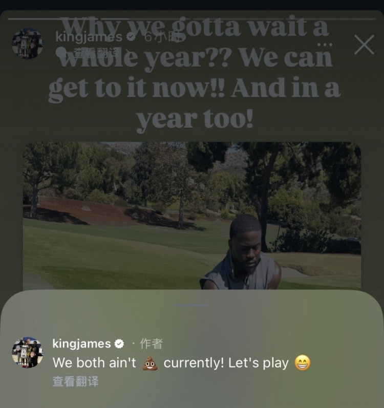 著名影星凯文-哈特晒出自己打高尔夫球的动态,并向詹姆斯发起了挑战:“高尔夫球手凯文正在加载中…… 请在这过程中耐心等待……但是我马上就要找你算账了!!!@詹姆斯 ……我现在公开向你发起挑战,在一年后的9月17日进行18洞的较量……我要让全世界看到我如何击败你!!!把这当作一个威胁和警告!!!顺便说一句,我要把无袖高尔夫球衫变成我的标志!!!阳光下秀出肌肉,宝贝们!!! ”