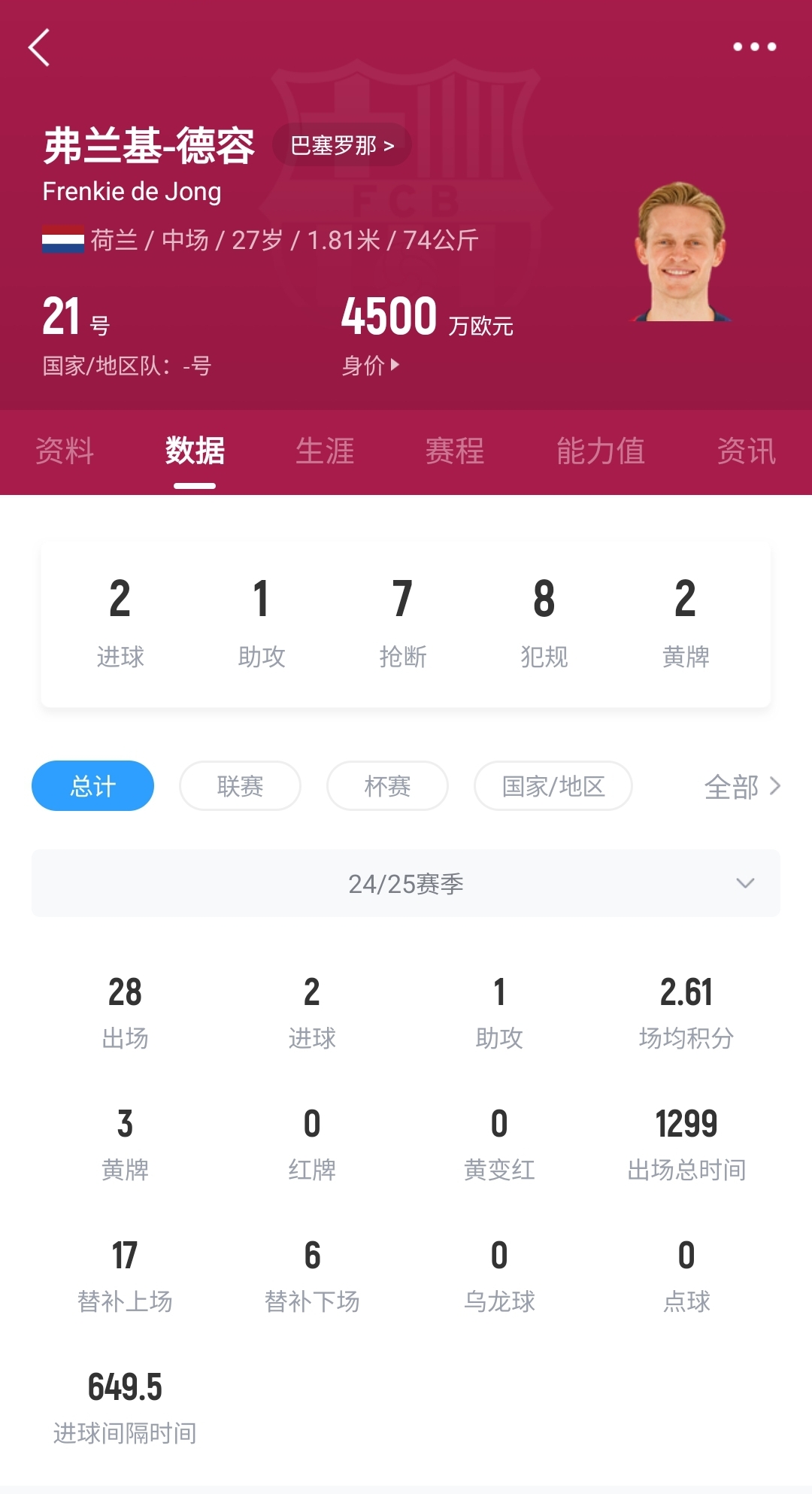 德科已经与德容的经纪人开始谈判,并提交了一份新的续约提案,新合同为三年,薪水与目前相同,即税前年薪1800万欧-1900万欧。