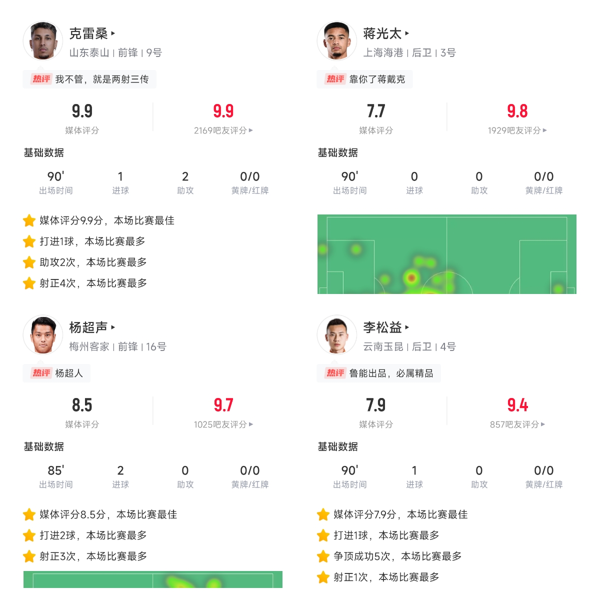 @蝎子:克雷桑用近乎完美的表现,一人之力掀翻升班马后防线,现中超第一“大腿”实至名归。