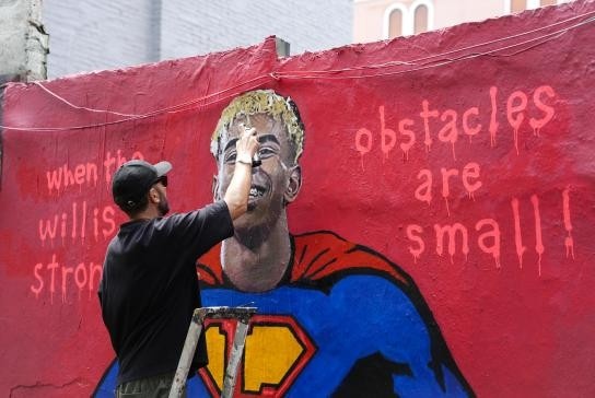 7月12日讯 距离亚马尔年满18岁只剩几小时,意大利街头艺术家Tvboy将他描绘为巴塞罗那街头的超级英雄。在其最新作品中,Tvboy将亚马尔描绘成激励新一代的象征:他身着超人服装,并配以有力的标语:当意志坚强时,障碍就变得渺小。
