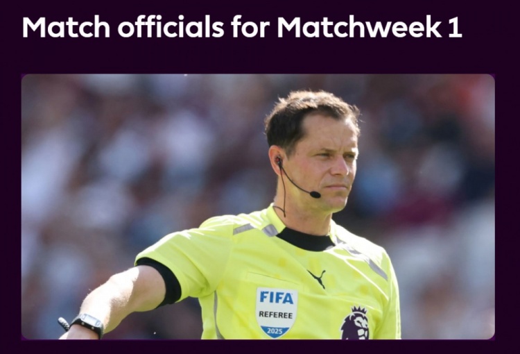 8月12日讯 新赛季英超首轮比赛本周末开打,英超官方公布了各场执法裁判。