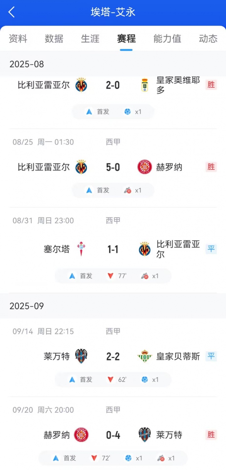 从黄潜转会至莱万特后,艾永的进攻火力依旧不减:5轮联赛过后,艾永已经在西甲贡献3球3助(为黄潜1球2助、为莱万特2球1助),5场比赛中共创造6个进球,在西甲射手榜上与拉菲尼亚等球员并列排名第3。